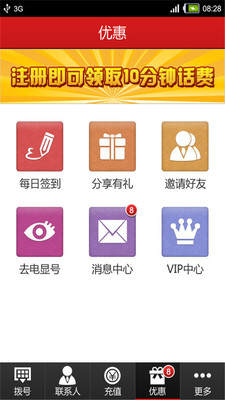 3、免费注册最高送60分钟长途话费;