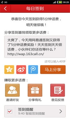5、签到、推荐、分享免费赠送高额话费!
