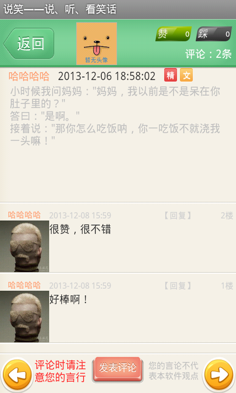 5、发表笑话更人性化可以发文字笑话、图片笑话、以及语音笑话等