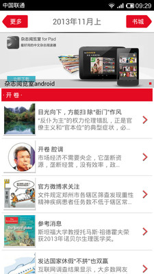 《读天下》杂志是面向全国发行的综合类文化生活杂志。它以“负责解读中国”为办刊总旨,以“及时、深刻、全面”为理念,关注世界和生活中的各个方面。杂志栏目主要包括时政、封面故事、专题、商业、社会、文化、娱乐和生活等版块。