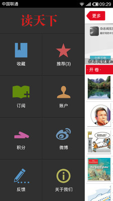 “我们负责解读中国”自2010年5月1日起,本集团新创刊物《读天下》。本刊与读者分享全球化资讯盛宴,关注欧美日韩等国际热点,讨论社会热点新闻事件,揭秘重大事件台前幕后,剖析政商名人细节人生,八卦劲爆娱乐人物事件,追求时尚前沿生活方式。让读者在阅读中轻松掌握全球最新政治、经济、文化资讯,深入了解新闻事件背后的真实。
