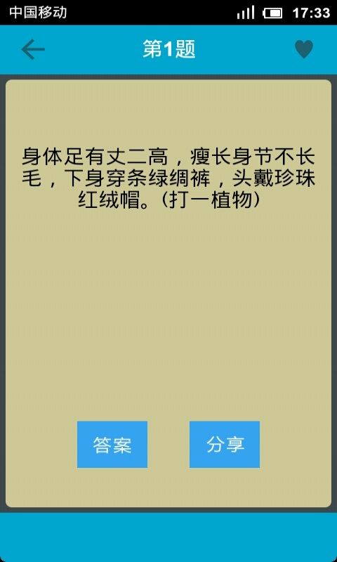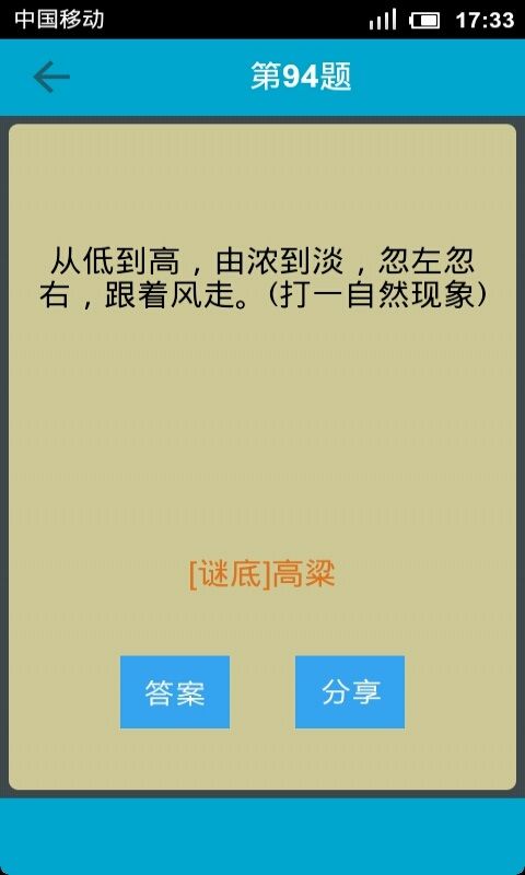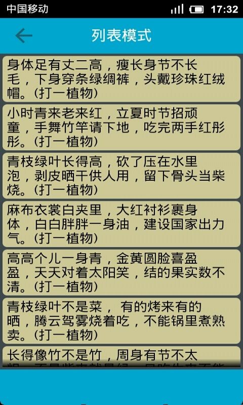 本软件收录了最新谜语题目,其中包括字谜,动植物谜语,历史谜语,成语谜语等.