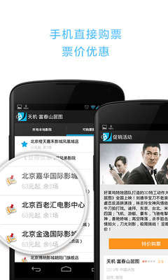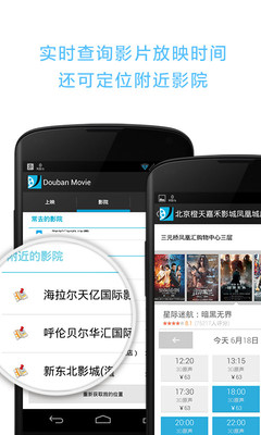 - 可定位离自己最近的电影院,实时获取影片放映时间和可购票场次;