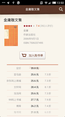 最新版本新增缺书到货提醒功能,还能查看京东、快书包等网店的价格信息。
