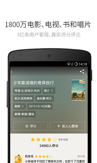 拿不定主意?让豆瓣来帮你。手机上的豆瓣,查书影音评分评论更方便。