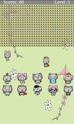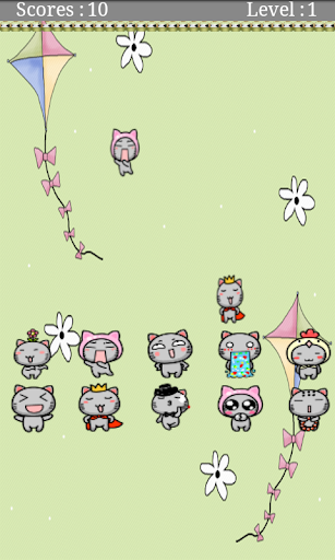 每過一關速度就會加快,遊戲有十個不同的貓。點擊相