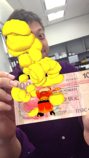 只要你下載應用程式,將鏡頭對準匯豐銀行100 元紙幣或中國人民銀行100 元紙幣,誠心許願,財神或者成功馬就會立即出現跟各位見面拜年!