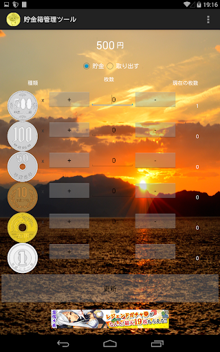 貯金箱の硬貨の枚数を記録できるアプリです。