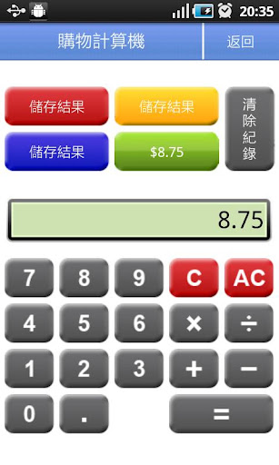 除了一般的加減乘除計算外,還設有四個記憶按鈕以記錄計算結果,方便比較物品價格。