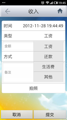 该应用方便用户管理自己的资金流动,记录日常支出与收入情况,并能够对历史数据进行查看,产生报表.对个人的资金进行分类管理,包括现金,银行存款,借贷款三种.个人备忘录功能,备忘录条目可以从收支记录中选择.也可以自己创建,备忘录带有闹钟的功能.同时,具有用户登录密码验证功能,保障用于信息安全.后续尝试加入用户数据云端管理,方便数据转移及保存.