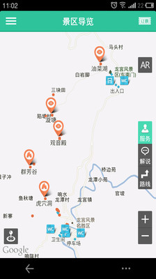 4.导游导览功能:地图范围内提供定位功能,便于你找到当前位置,以及园区内景点、处理服务站(包括休息点、厕所)的位置;
