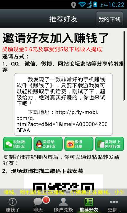 2、一键推荐到微博,QQ,微信,推荐也赚取奖金