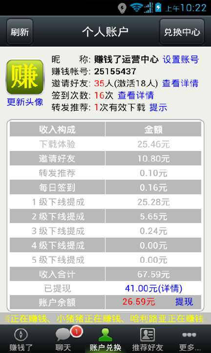 3、邀请下线好友,赚取更多奖金提成。实时查看自己的下线情况