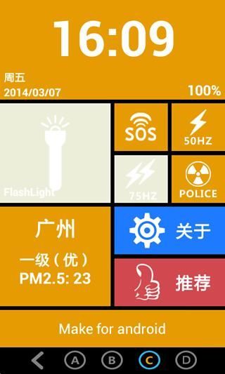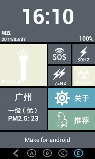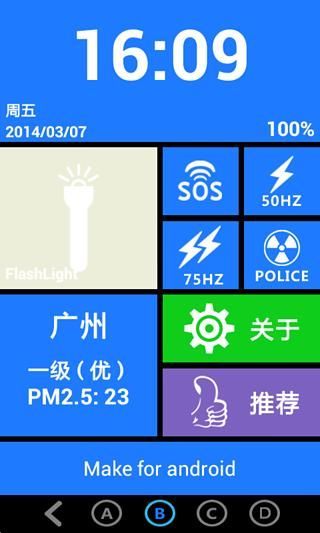 超级手电筒,界面简洁,功能强大,操作简单易用。包含led手电筒和空气质量检测功能,另外附加闪灯、警示灯,电报效果,是集照明、应急、娱乐一体的实用安卓手电筒。主要功能:1、超级亮的手电筒;2、提供实时查询全国189个城市的空气质量监测数据,为健康生活提供指引;3、占用内存及小,启动超快;4、图形分辨率高;5、电池最优化;6、闪频模式;7、脉冲模式(摩斯码);8、紧急信标(闪烁摩斯码发出SOS);9、已适配市场主流机型。