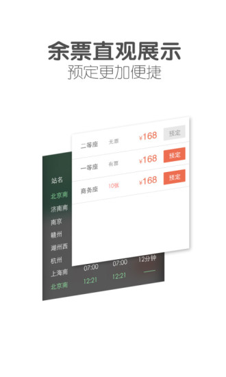 出行必备手机应用! 超级火车票(Ticket Searching)与铁道部官网同步,支持手机预订火车票!支持火车余票、时刻表、停靠车站、票价、火车票代售点等各种火车信息查询功能。 余票查询 预订车票 时刻表、票价 代售点 返程票 预售期信息 火车票使用帮助 界面美观实用,支持包括CMWAP在内的所有网络,且耗费流量少,体贴低流量套餐用户。