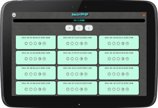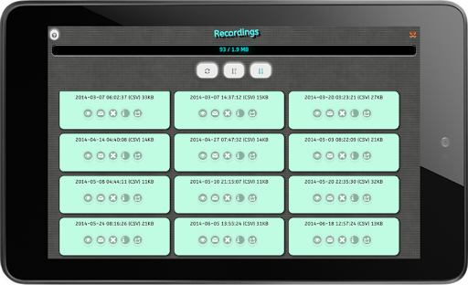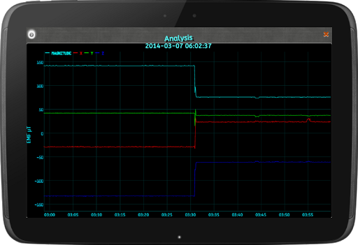 互动在应用程序的分析,可以让你刷卡和缩放代表记录EMF扫描结果的图表。一个整洁的特点是,录音保存为逗号分隔的文件(CSV),这是一种常见的文件格式,很多应用程序和计算机应用的支持(例如MS Excel)。超自然现象调查员当然明白这一点,因为它可以很容易地包括日志和客户报告较长时间的扫描结果。而为了让事情变得更简单,你可以在一个按一下按钮其他应用程序打开您的录音。