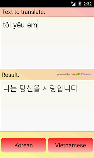 這個免費的應用程序能夠單詞和文本翻譯從越南到韓國,從韓國到越南。非常有用的免費的應用程序,方便和快速的翻譯,這也就像一本字典!