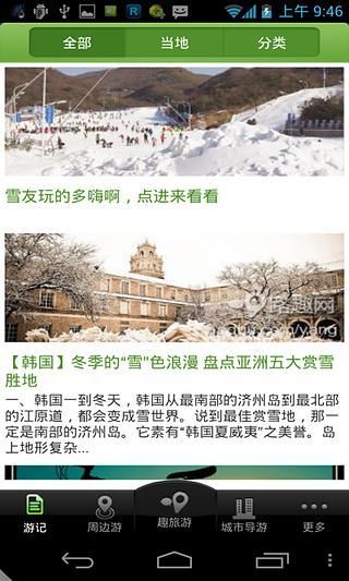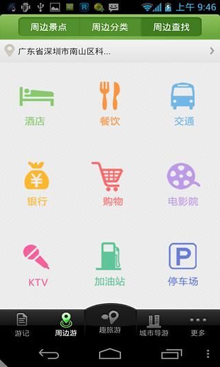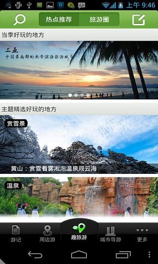 趣旅游:旅游出行必备,是一款好用的旅游App助手;在这里,可以通过游记功能,查看其它网友在附近发送的游记、让你足不出户,就可领略周边景色的美丽风光;在周边游模块,找到周边都有哪些好玩的景点,并且可以查看该景点的详细信息,包括吃、住、行、玩等;通过首页模块,你可以知道当前季度都有哪些好玩的地方,再也不用为不知道去哪里玩尔发愁了;通过城市导游模块,你可以对某个城市的景点有一个比较深入的了解,让你在不同的城市间自由行走,还可在社区签到、互动,与最懂玩的人记录分享足迹、路线及照片、GPS导航、微博定位等多功能的免费软件。分享旅途中的乐趣。