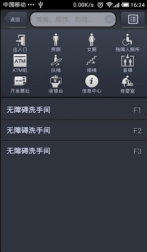 -- A:搜索将快速显示厕所、收银台、信息中心等常用设施位置