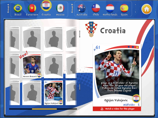 您有沒有最喜歡的球星和球隊?收集球星咭,並將它們珍藏在貼圖冊內。您在積分上擊敗您的朋友和擁有一個完美的收藏品。在這免費遊戲中,貼圖冊將包括參加2014年巴西世界杯所有球隊,以及以往傳奇的球星,有比利、施丹、馬勒當拿,朗拿度,梅拿,簡尼,卡富,馬甸尼,列卡特,柏金,還有更多。