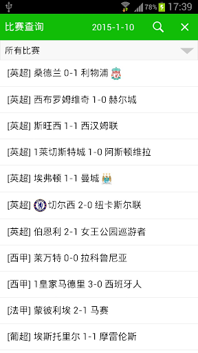 该应用程序是足球比分直播Android客户端;