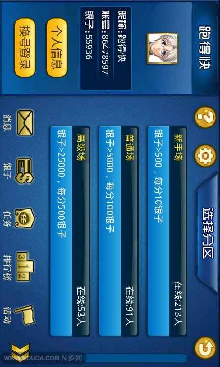 3.刺激多样化:游戏内分新手场、普通场、高手场、VIP场。不同场体验不一样的刺激。