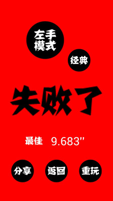 游戏操作非常简单,只需点击或滑动屏幕中的黑白圈即可,但是非常考验玩家反应速度和敏捷度,极其具有挑战性!简单好玩,根本不停不下来,想找虐,想挑战自我,就来试试吧!游戏分为左右手和双手三大模块,每个模块对应有三个模式:经典模式,以最快的速度到达终点;街机模式,你有能力得多少分就得多少分,没有任何限制,这也是最具挑战性的一个模式;禅模式,在15秒内看你能走几步!