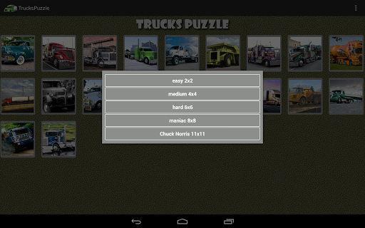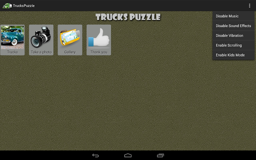 从菜单中启用的孩子模式,把卡车拼图成一个更简单,更方便的益智游戏的年轻球员。孩子模式禁止件的转动,并限制的难度级别。