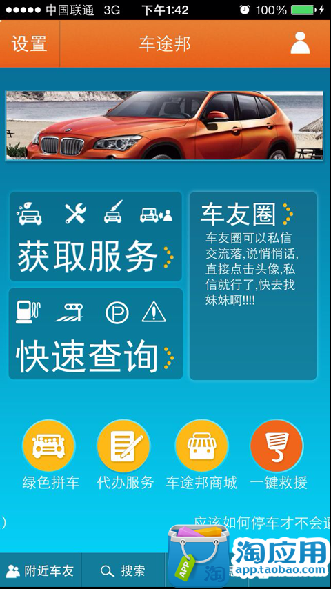 二:还有数十万车途邦邦友在“车友圈”和您在线语音、在线图片,随时聊您想聊,微信什么的弱爆了。