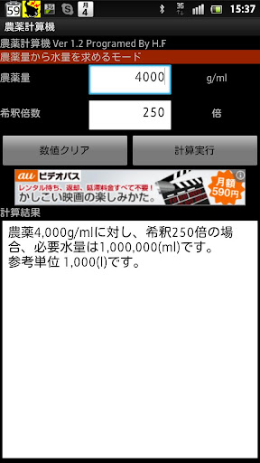 離農していますが、最近、除草剤などを噴霧器で散布するときに、水量によって手軽に計算できたらいいなと作成したものを公開しています。