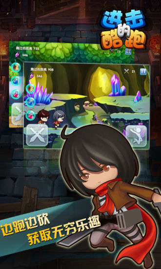 《进击的酷跑》是一款趣味另类的跑酷游戏。《进击的酷跑》是以动漫《进击的巨人》为游戏背景,大展跑酷风姿!