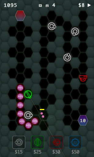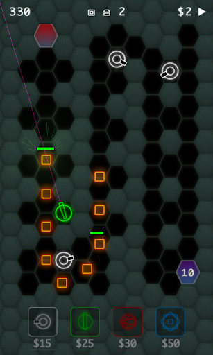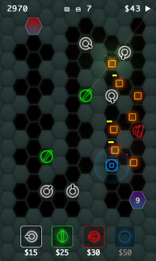 MiniDefense画面效果华丽,音效逼真,是一款不可多得的塔防游戏。游戏中,开始时有$50可以安装两个激光枪,随着不断打击会获得金钱,可以继续安装激光枪;不要让黄色的小方块从另一头出去,你就会获得最终的胜利。