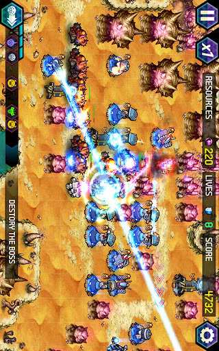 《失落的地球 Tower Defense: Lost Earth》的画面表现形式,依然是Com2uS擅长的2D风格。人类的9种不同类型的防御建筑和4种不同的特殊辅助武器,以及多种形态的外星生物,构成了一场场激烈的防守战役。不过Com2uS的2D攻击表现力做得还是有点偏卡通的感觉,所幸防御建筑的攻击方式的多样性——咆哮的机枪塔、强力的轰击、灼烧一线的激光等等,令这点得到了不错的弥补。游戏的配乐不多,风格倒是很科幻感。而在关卡中则是以音效为主,尽可能的去突出战斗的激烈感。整体的感觉还是比较不错的。