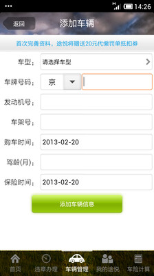 途悦违章查询,提供全国范围内的交通违章查询,并可以在线代缴违章,目前能查询上海、北京、浙江、贵州、福建、安徽、河北、湖北、山西、吉林、黑龙江、甘肃、重庆、宁夏、青海、四川、云南、内蒙古、广东、郑州等省市的违章查询,并提供一些城市的代缴违章业务。