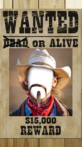 利用以及與此最新的有趣的照片展位欣賞你的榮耀時刻,連服5分鐘!下載最高通緝照片編輯器,並享受被從狂野的西部真正的亡命之徒!安裝最好的免費照片編輯軟件,把一個很好的回報您的朋友的追趕!適用於高清相框和效果,並發現自己的FBI頭號通緝名單上!