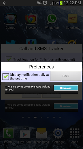 - 您可以啟用通知,將在移動的每天一次的通知欄通知您,並顯示您的通話和短信的軌道。您可以更改您要在其中要顯示通知的時間。