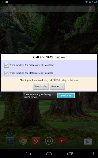 - 呼叫/短信跟踪默認情況下禁用。在主視圖中,啟用複選框通話和短信跟踪。下一次呼叫或接聽,設備的位置是牽強。此外,如果一個SMS被發送或接收時,設備的位置被取出。本信息不被該應用外部發送的,因而信息是安全的。