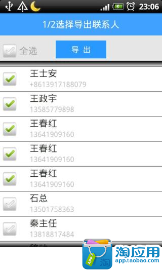 "亲 ,单机版通讯录导入导出应用, 无需上网,直接选择人员信息导出成备份文件,还可以将备份文件中的人员信息导入到指定手机中,界面简洁,操作简单。 适合于 刷机前备份 朋友间部分通讯录共享 手机通讯录迁移