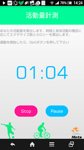 このアプリは、「運動管理アプリ Let's METs」の姉妹版です。前作と同様に、日常生活における労働、家事、通勤・通学等の「生活活動」とスポーツ競技の関連種目等の「運動」の両方を含めた活動量を総合的に評価します。