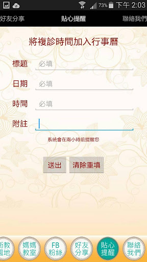 醫療 /1月 1, 1970 /海納川-雲端服務 /ビュー:278 遠興婦產科診所|醫療線上App不用買 シェア記事: Facebook Google + Twitter 遠興婦產科診所免費玩遠興婦產科診所 APP玩免費免費玩遠興婦產科診所 App遠興婦產科診所 APP LOGO遠興婦產科診所 APP QRCode熱門國家系統支援版本費用APP評分上架日期更新日期未知AndroidGoogle Play1.03App下載免費1970-01-012015-04-24 シェア賞賛: Twitter シェア記事: Facebook Google + Twitter 前へ神農中醫診所 次へ重安養生中醫診所 醫療App関連の推奨 醫療 /1月 1, 1970 /VMAGE CO.,LTD 幼兒發展檢測 HD 您了解家中孩子成長的進度嗎?您是否需要一款能夠一次提供您幼童所有成長資訊的APP?「幼兒發展檢測」針對家有六歲以下孩子的家長量身設計,提供寶寶的成長進度觀察及發展檢測,讓您只要一個APP在手,便能對孩子的成長進度瞭若指掌!(礙於Android系統的原廠解析度與規格不同,恕無法適用於每支Android... 醫療 /1月 1, 1970 /VMAGE CO.,LTD 幼兒發展檢測 您了解家中孩子成長的進度嗎?您是否需要一款能夠一次提供您幼童所有成長資訊的APP?「幼兒發展檢測」針對家有六歲以下孩子的家長量身設計,提供寶寶的成長進度觀察及發展檢測,讓您只要一個APP在手,便能對孩子的成長進度瞭若指掌!(礙於Android系統的原廠解析度與規格不同,恕無法適用於每支Android... 醫療 /1月 1, 1970 /台北馬偕資訊室 馬偕行動掛號 馬偕醫院行動掛號提供台北、淡水、新竹、台東四院區,在手機平台上進行「行動掛號、看診進度、掛號查詢、本機記錄、病症參考、交通指引」的功能服務,敬請多加利用。免費玩馬偕行動掛號 APP玩免費免費玩馬偕行動掛號 App馬偕行動掛號 APP LOGO馬偕行動掛號 APP QRCode熱門國家系統支援版本費用... 醫療 /1月 1, 1970 /Peripheral Brain, LLC Journal Club for Android Internal medicine literature at your fingertips.ALLHAT, JUPITER, ARDSNet, CLOSURE, WARFASA, FACTT. Let’s face it: the sea of evidence-based medicine i... 醫療 /1月 1, 1970 /Advantech 新樓醫院 以基督教之博愛精神推行醫療服務、宣揚福音、服務社會。宗旨:醫療、傳道理念:服侍、愛心、盼望目標:1. 發揚新樓精神理念2. 提升醫療服務品質3. 實現社區全人照護願景:成為社區身、心、靈,健康維護的標竿醫院免費玩新樓醫院 APP玩免費免費玩新樓醫院 App新樓醫院 APP LOGO新樓醫院 APP ... 醫療 /1月 1, 1970 /Cheng Hsin General Hospital 振興醫院 竟然可以坐在咖啡店,一邊喝拿鐵、看小說,一邊優雅等待”看診進度提醒”掛號不再需要排隊,就用手機APP輕鬆預約利用『我的最愛』常看診醫師名單一指搞定振興醫院推出了全新版本APP,透過貼心的人性化智慧介面,只要您的手指動一動,就可以輕鬆掌握看診資訊!「聰明月曆」全新掛號行事曆,一次秀出醫師看診時間及診別...