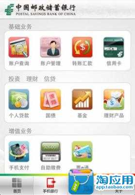 中国邮政储蓄银行手机银行致力于建成一个符合中国邮政储蓄银行应对全方位、立体化金融服务的需要,涵盖基于移动互联网渠道的个人金融服务品种,为客户提供多功能、现代化、简易、便捷、安全的移动金融服务窗口,实现符合中国邮政储蓄银行渠道发展需要,满足客户对于移动金融产品灵活创新要求的电子交易平台。