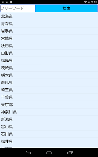 ●都道府県から検索するときは起動画面のリストから項目を選んでいくだけで目的の町までたどり着けます。