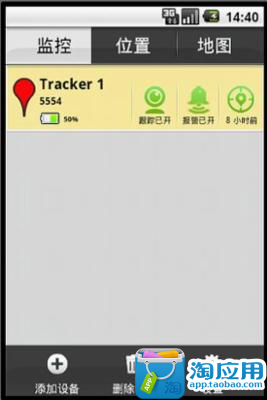 本软件是一款“定位设备”监控软件。运行于android平台的手机、平板电脑上。可在内置电子地图上轻松地观察多个被监控“定位设备”的位置。主要使用自定义的短信协议与 “定位设备”互相通讯。控制“定位设备”的各种配置,包括:工作模式、工作时间段、位置上报、报警等等,获取“定位设备”的各种状态,如当前电量、速度、位置、地址。位置上报支持定时上报与定距上报方式。报警支持声音报警、震动报警与电子围栏报警。有监听“定位设备”周围声音功能。支持电子地图、卫星地图浏览模式。支持位置历史记录、回放功能。注意:此软件为专用设备研发,需要设备支持!