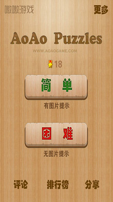 游戏中有简单和困难两种模式,简单模式可以自由拼图,困难模式则必须按照划分好的格子拼图,每关从2x2,也就是4块儿图,逐渐升级难度到9x9,全家一起努力打通关吧!