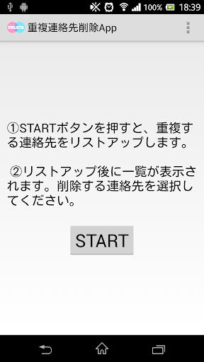 ①STARTボタンを押すと、重複する連絡先をリストアップします。
