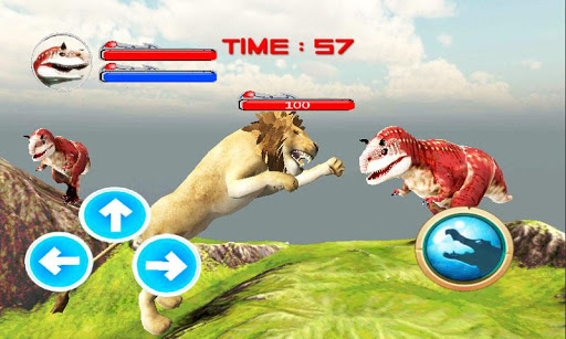 野生獅子攻擊恐龍2在侏羅紀。最熱門模擬器遊戲。
