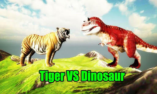 仿真老虎攻擊和恐龍在侏羅紀戰鬥。頂級模擬器。