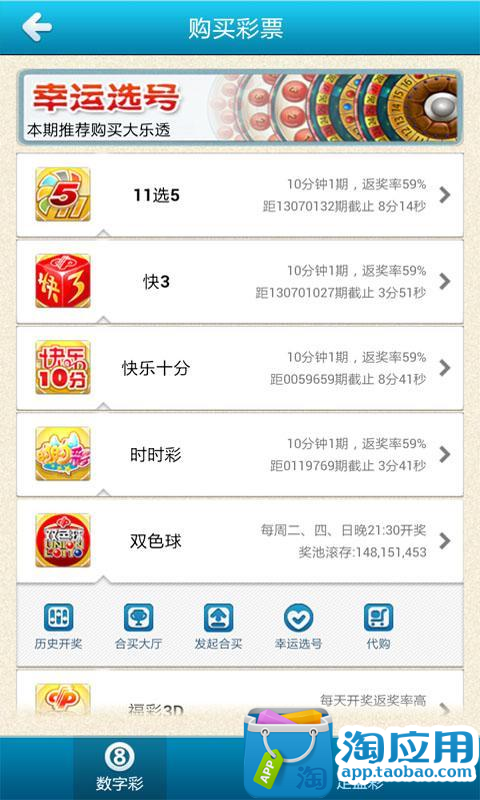 ★彩种最全:覆盖国家福彩和体彩中心正规发行全部主流彩种,如双色球、大乐透、足彩、11选5、快三、快乐10分、竞彩足球、竞彩篮球、北京单场、3D、时时彩、排列三、排列五、22选5、七星彩和七乐彩等;