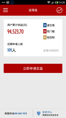 金操盘将互联网技术和证券金融相结合,与市场上数十家证券公司和金融服务相关上市企业合作,致力打造适合于股民投资者证券投资理财服务。用户可以通过金操盘平台,用很小的本金去申请一笔股票实盘操作资金,盈利部分全归用户所有。