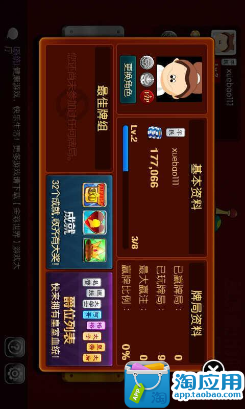 游戏简单有趣,上万牌友同时在线,高手云集,还等什么?赶快下载,加入这场风靡全球的时尚高端牌类游戏party吧!